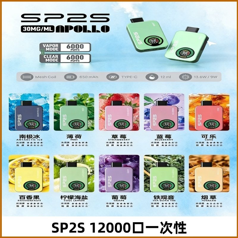 SP2S Apollo 12000口拋棄式電子煙:革新您的隨身霧化體驗